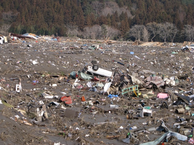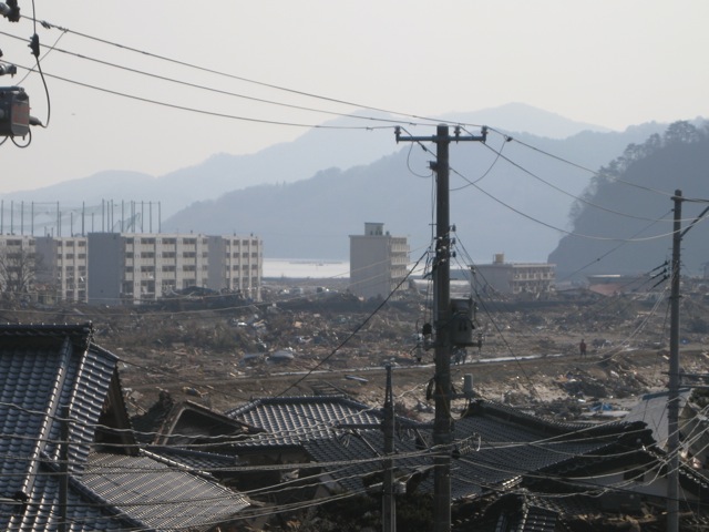 大船渡市街地の津波被害が大きかった地域に初めて足を踏み入れましたが、見慣れた街並の無惨な変わりように言葉を失いました。がれきの山、折り重なる自動車、流された家々。。。