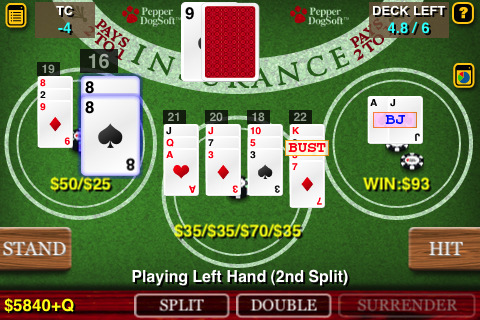 残念ながら無料バージョンは1ハンドのみとなっていますが、¥230の「BlackJack ♤ Multi-Hand」