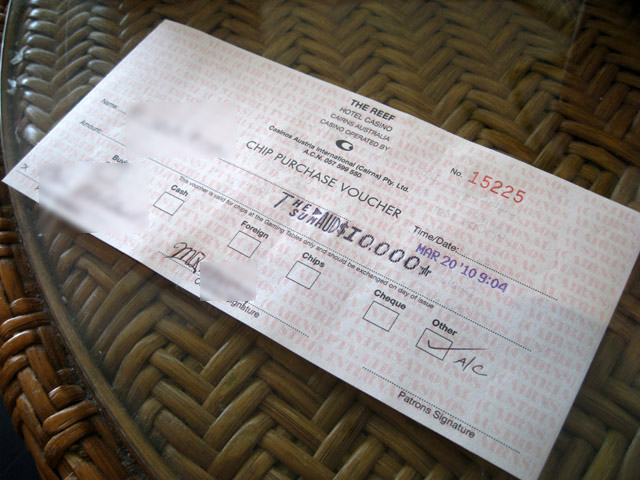 手続きが正常に行なわれると、そのマーカー分のチップとともにマーカーが渡されます。(マーカーの方が遅れてやってくることが多いようなので、それを受け取るまではテーブルを離れないことが大切です)あとは通常通りプレイ出来ます。