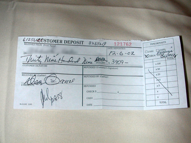 ゲーム・テーブル(あるいはケイジ)で、このデポジットからマーカーを切り、チップを引き出します。