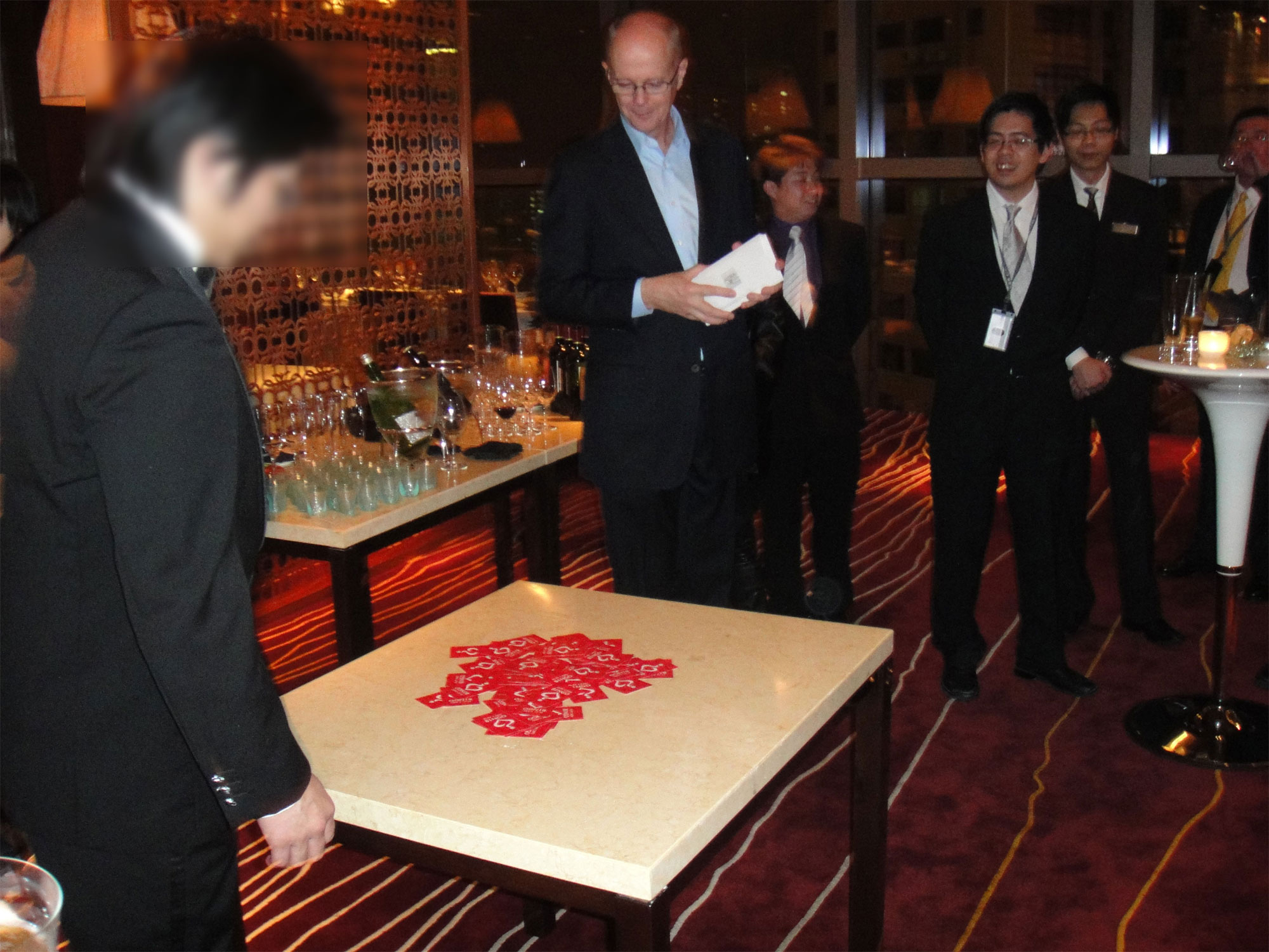 浴びて8時30分より勝負開始、空いているテーブルでシャッフルを