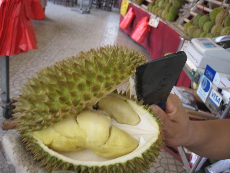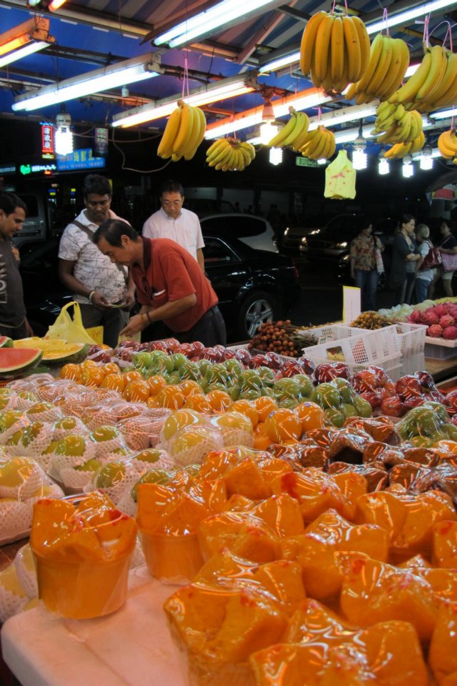 「ゲイランのフルーツストリート。ドリアン食べたい」