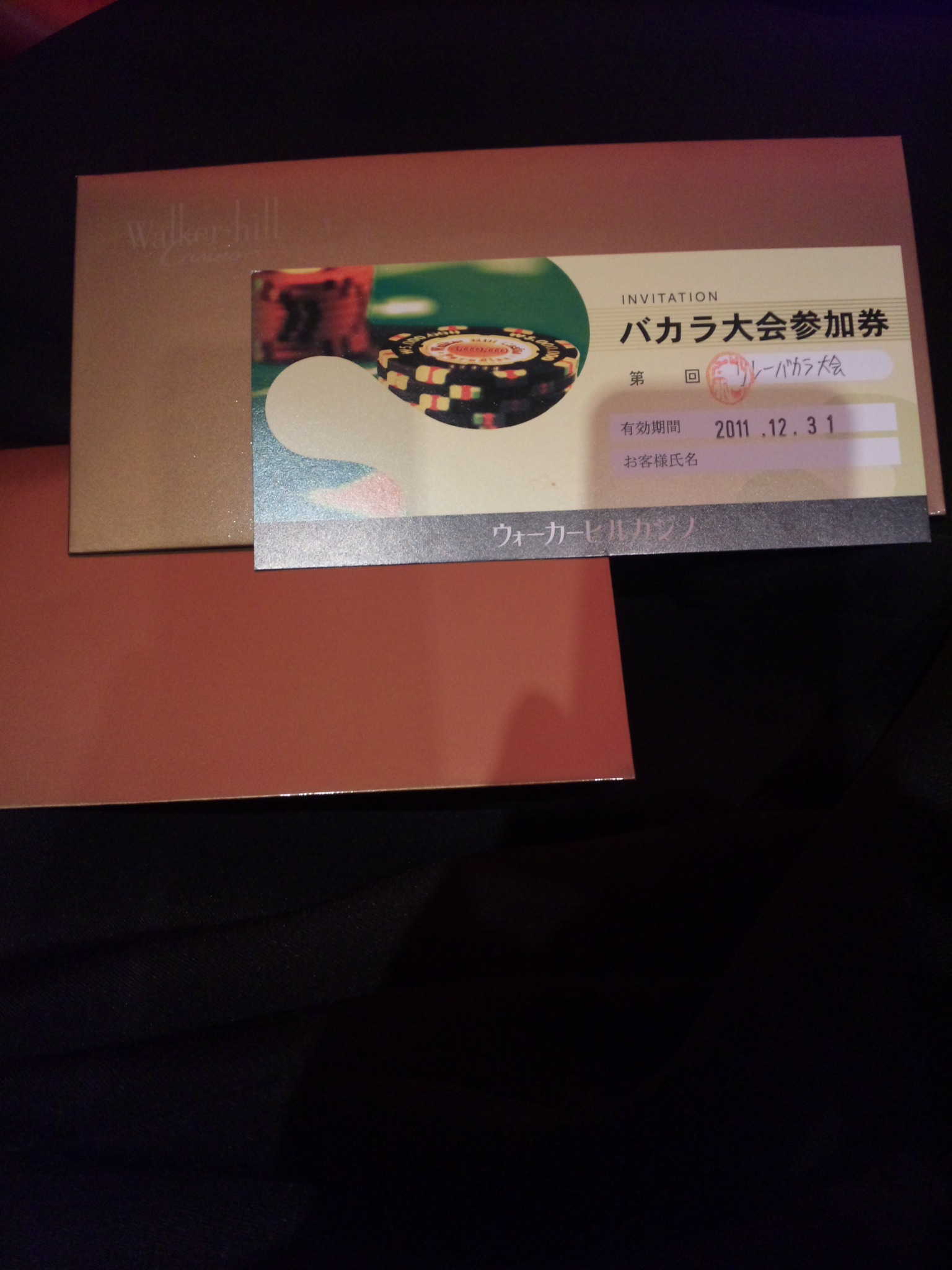 そして、本日の目玉は、今ウォーカーヒルカジノ一押しの「リレーバカラ」の無料参加券(写真)の抽選でした!
