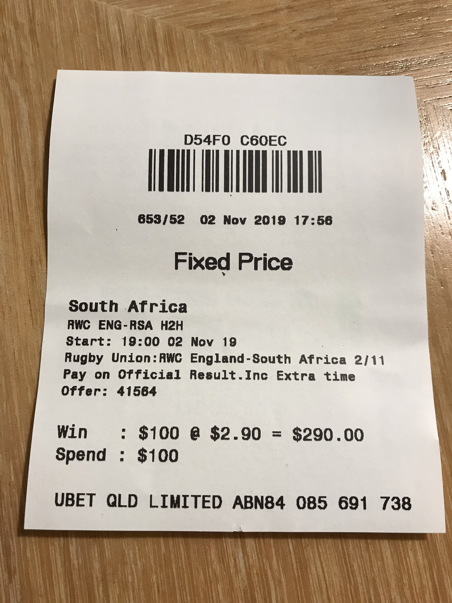 南アフリカに100ドルかけていたので、ワクワク楽しい時間でした!