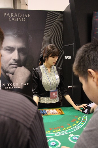 さて肝心のカジノのほうですが、バカラ卓はすごい数です、主に韓国・中国の方々がプレイしていました。あまりに多すぎて稼働していないテーブルも入れると40以上はあったのではないかと思います。