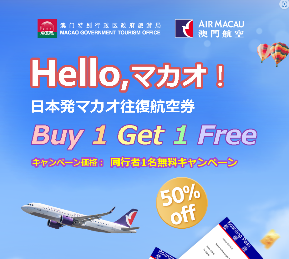 マカオ航空買1送1キャンペーンでもやはりお高い…、結局コロナ前2名運賃ですね。