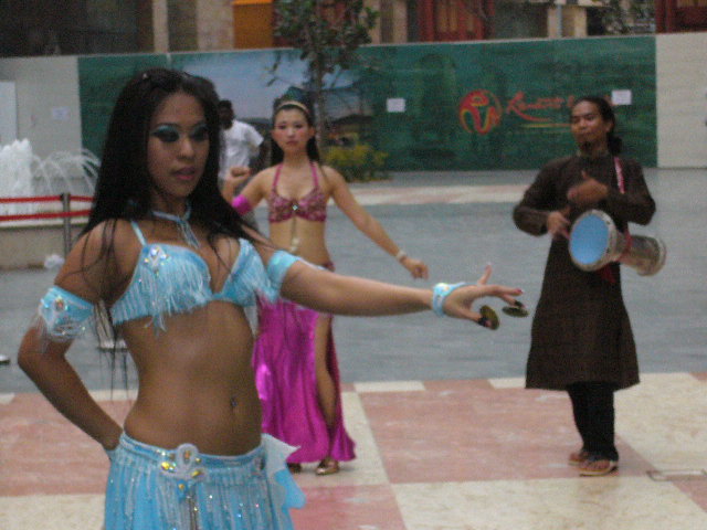 様々なショップが並び、噴水がいたるところにあり、脇にはセントーサと本島を結ぶモノレールの駅があります。一日中色んな催し物がやっていて、この日はセクシーなお姉さんが踊ってました(^^♪