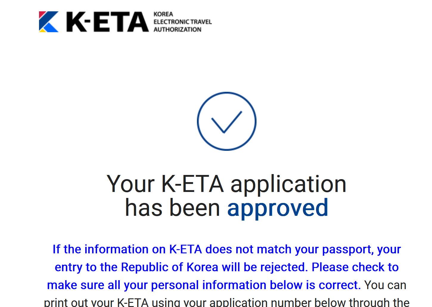 >そして、早速、K-ETAの登録をした。実際20分くらいかかったが、申請完了19:07で完了のメールが来たのが19:13で承認のメールが20:06でした。素晴らしい。サイトに戻ってリザルトのところにパスポート番号、生年月日入れると、ちゃんと完了して名前からパスポート番号など登録した情報が出てきて、今日8月4日から2024年8月2日までの期間使えると記載。