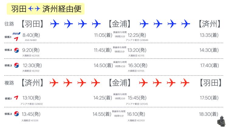 往路:成田→済州(大韓航空) 16:35(発)-19:25(着)