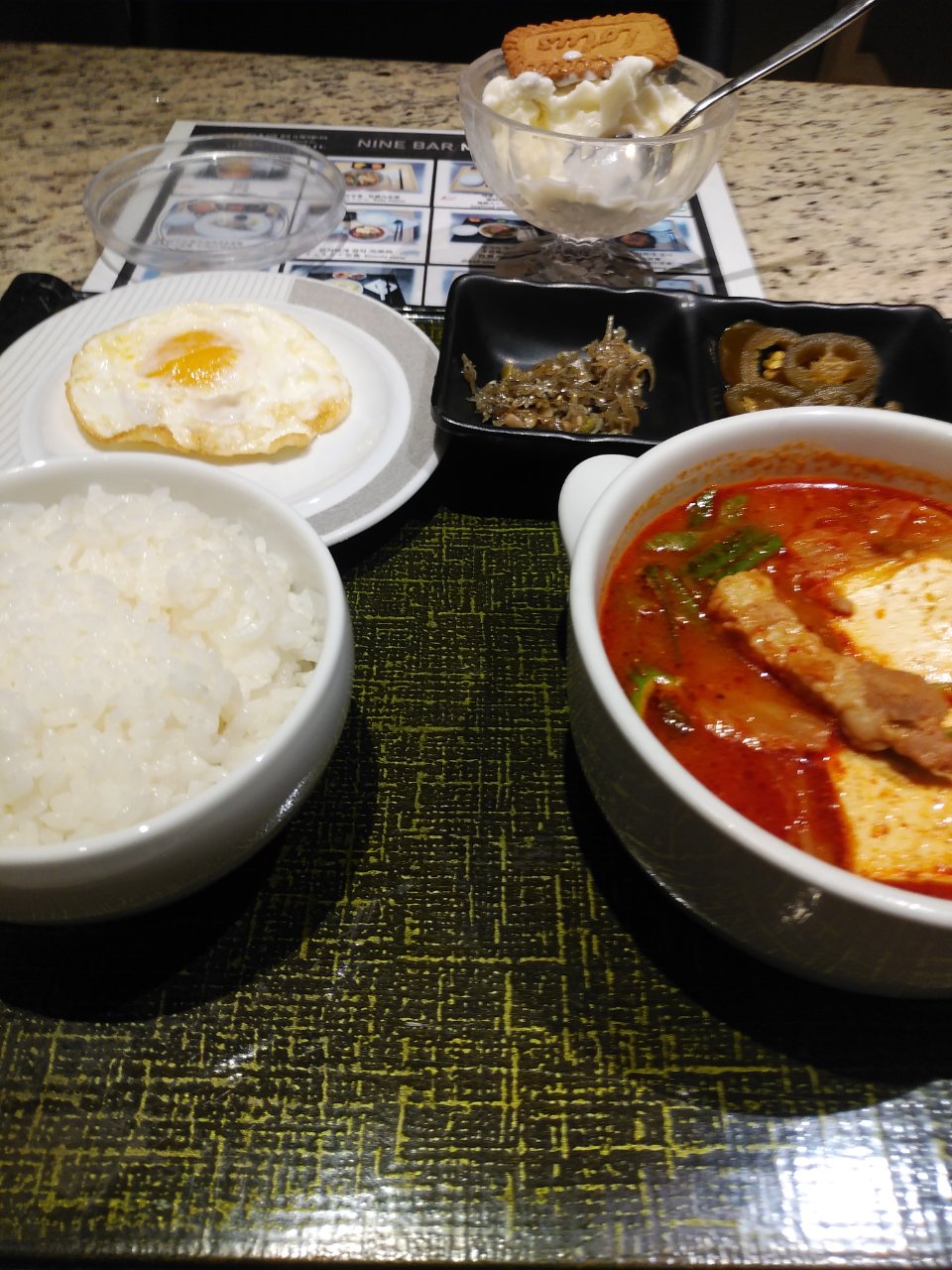 奥のビュッフェが利用できると思います。ポイントの使い方も併せて確認しておきますね。
