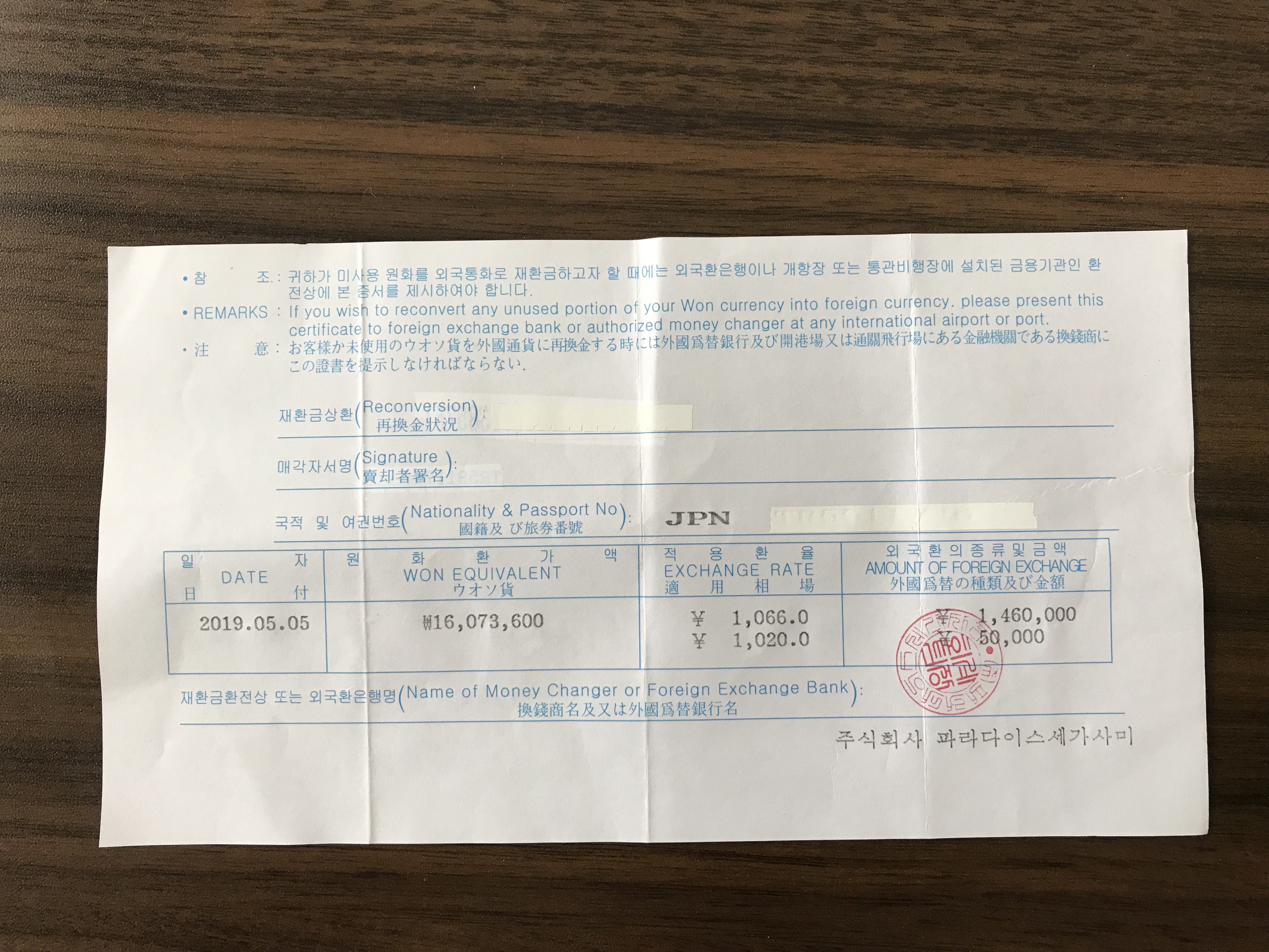 >韓国のカジノでは円をウオンに両替した分については再両替の時