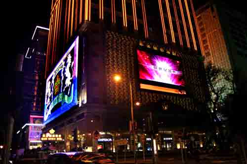 スターワールド ホテル&カジノ StarWorld Hotel & Casino 星際酒店「スターワールド」は、香港の銀河娯楽集団(ギャラクシーエンターテイメント)が運営するカジノで、2006年10月にオープンした超豪華な5つ星カジノホテルです。現代的なデザインと銀色に輝く豪華なロビーが印象的で、38階建て高層ホテル壁面に取り付けられたアジア最大のLEDモニターは、夜ともなると煌びやかで幻想的に演出され注目スポットにもなっています。