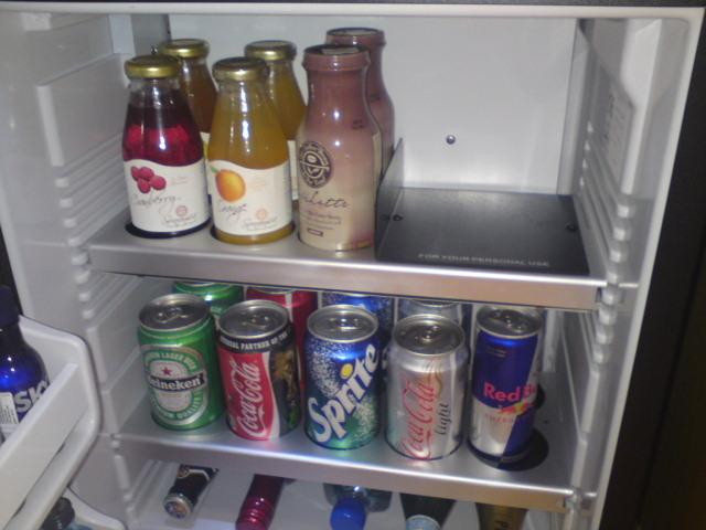ミニバーの値段は非常に高く、コカコーラが$8、ビールが$13もします。