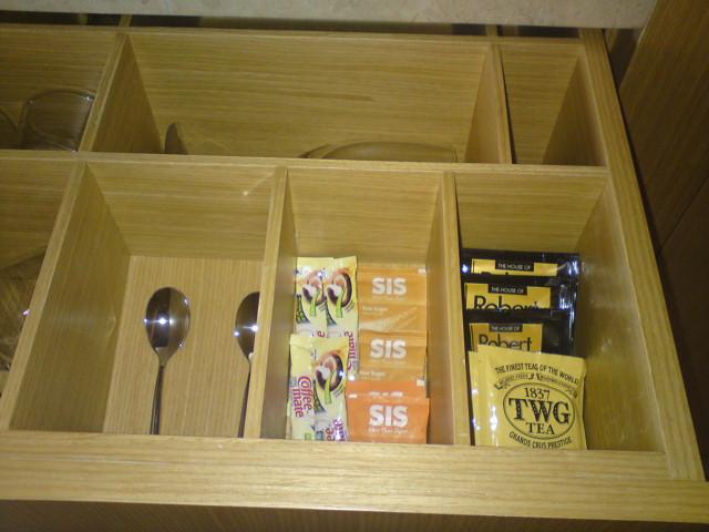 ミニバーはオートセンサーになっていて、飲み物を動かすだけでチャージされます。
