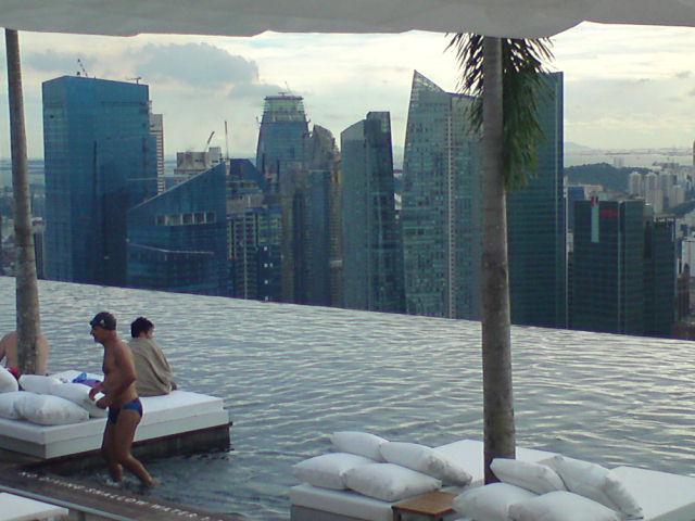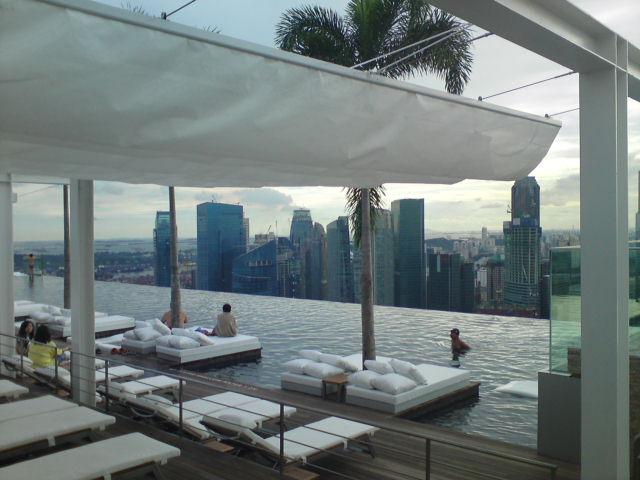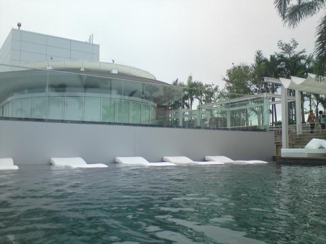 カジノに疲れた後は、シェントンウエイのオフイス街の夜景を前にしてプールのデキチェアでシャンパンを片手に過ごすなんて、素敵すぎます