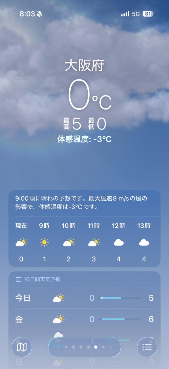 当日の大阪は最高気温5度、最低気温0度。