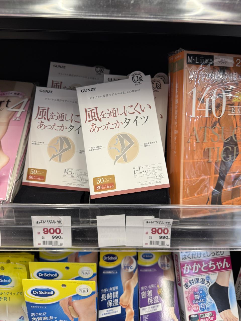 関西空港で慌てて探すと、ドラッグストアの一角に残っていたのは、女性用の暖かタイツLLサイズのみ。