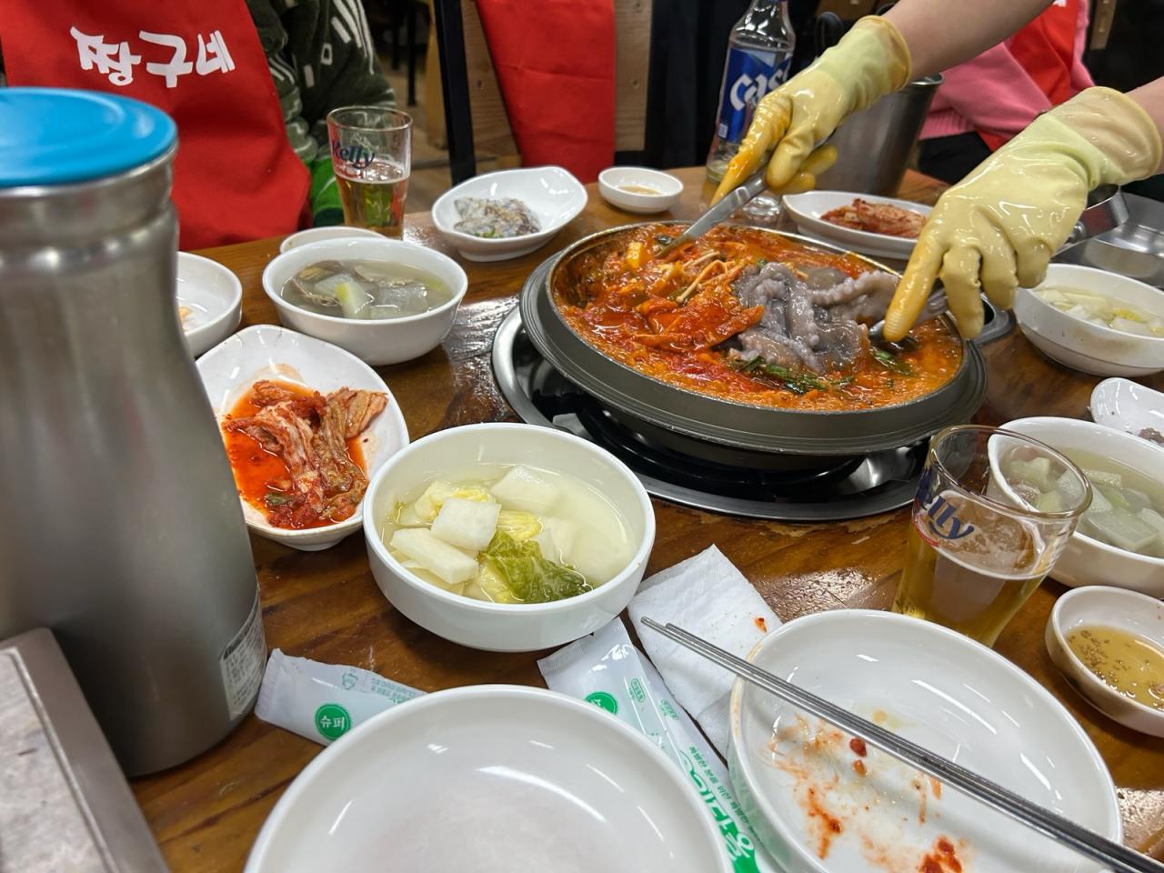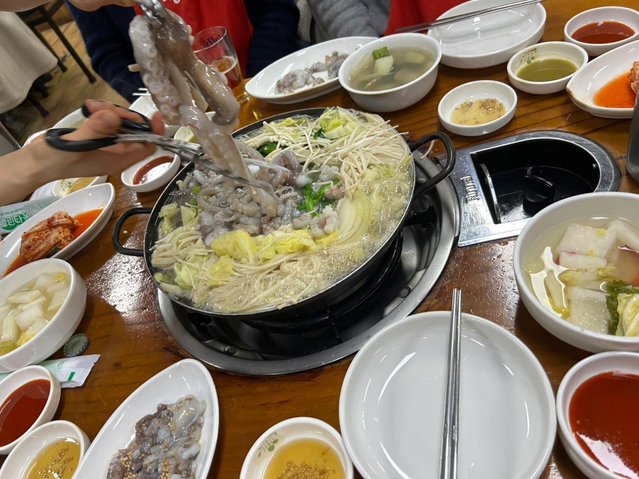 夕食会@2回目は赤鍋白鍋で有名なナッチチョンゴル(タコ鍋)の店です。