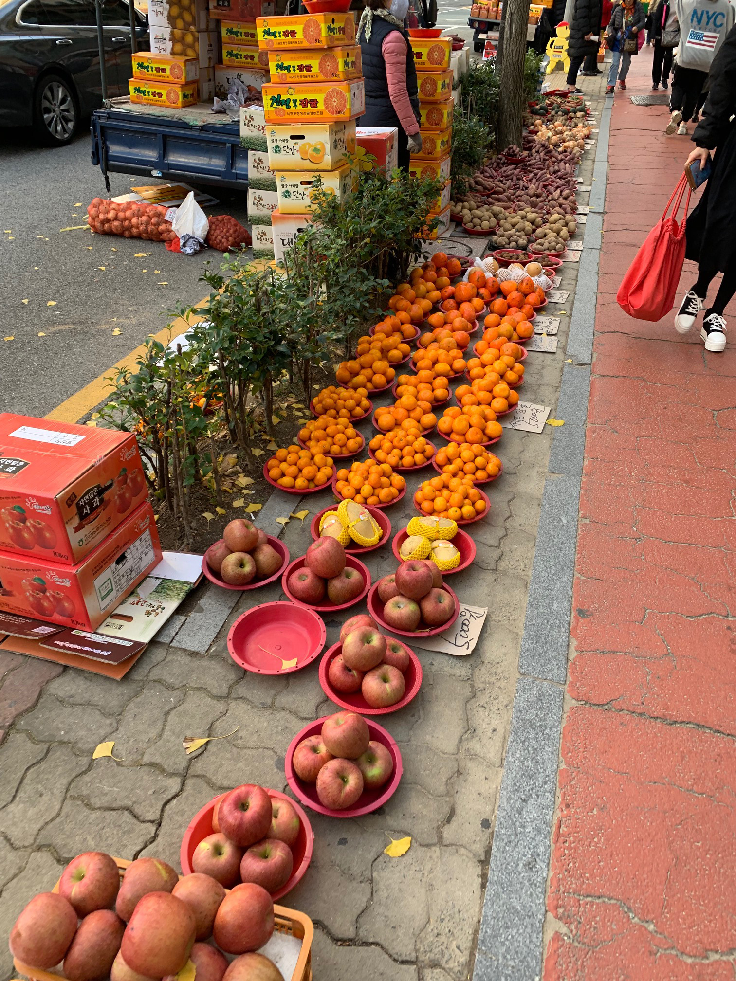 地下鉄までの道中は路上で、野菜や果物、スイーツなんかのトラックもあり、すっかり観光気分。なんかあったかい感じ。釜山いいなあ。