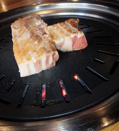 新設洞(シンソルトン)駅近くの「肉典食堂(ユッチョンシッタン)」でサンギョプサルを食べました。肉がジュシーでおいしいです