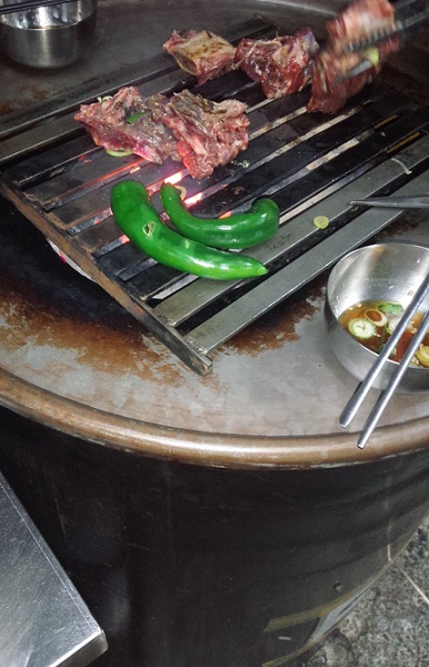 そして夜食に明洞にできたドラム缶焼肉のソソカルビで牛カルビを食べました。
