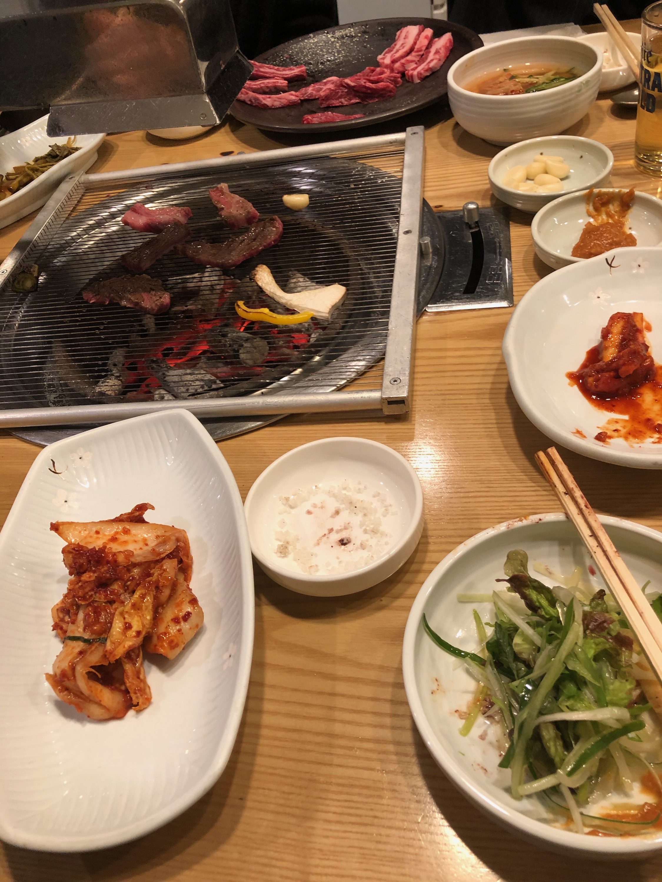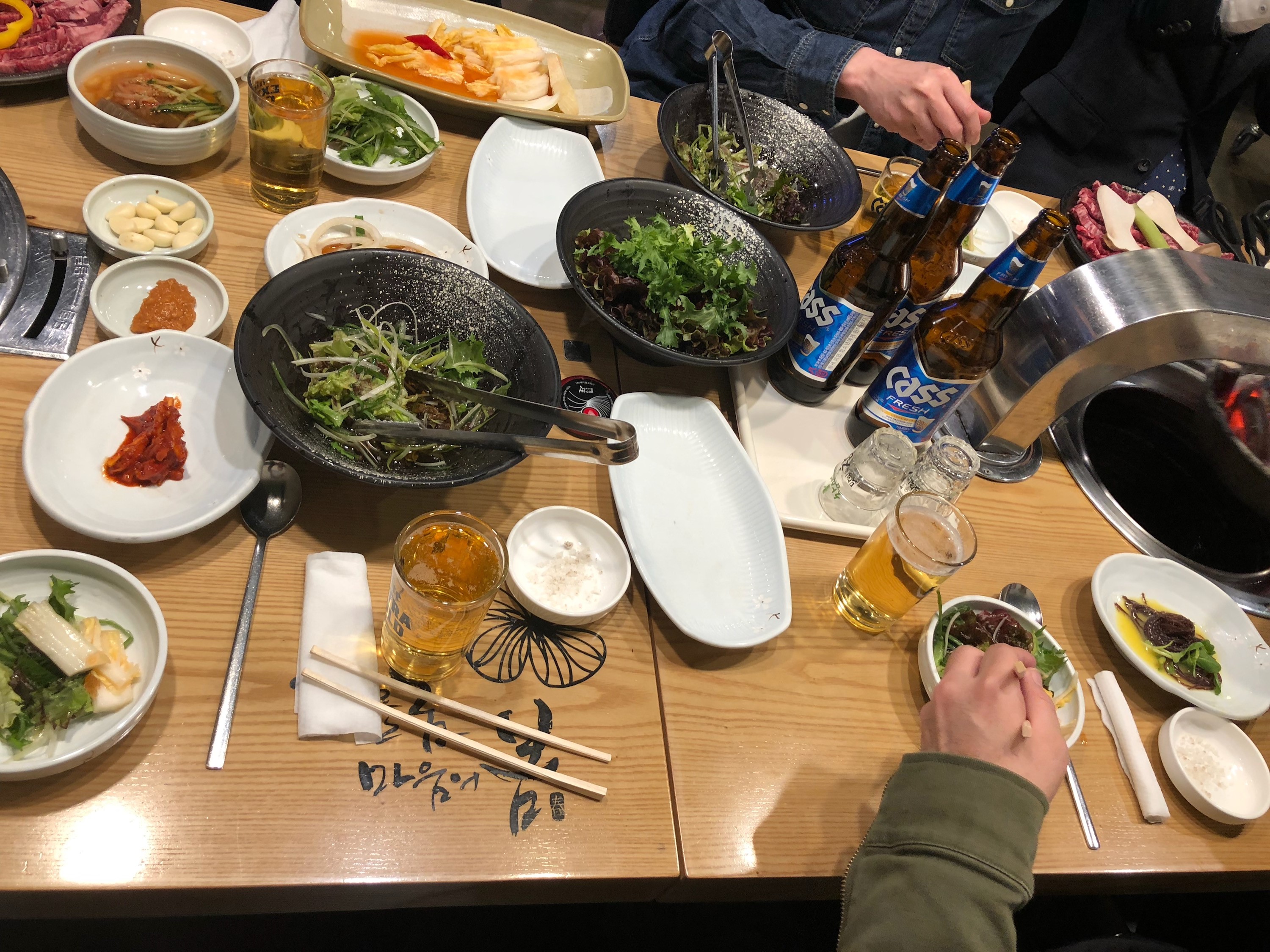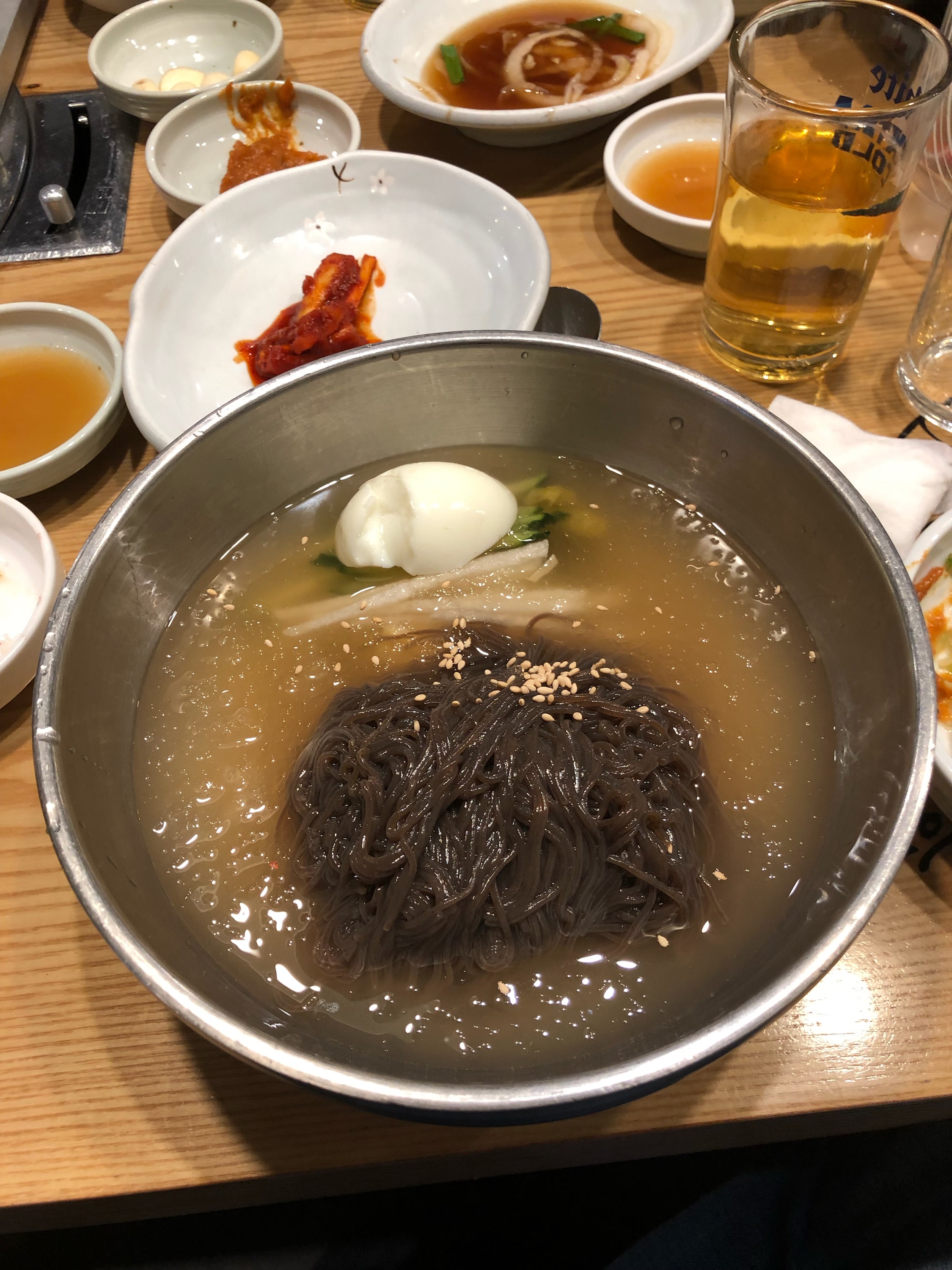 牛肉や豚肉、白キムチ、焼きニンニクから定番の冷麺などをビールやマッコリで流し込むなど、すべて美味しくいただきました(ド満足)。