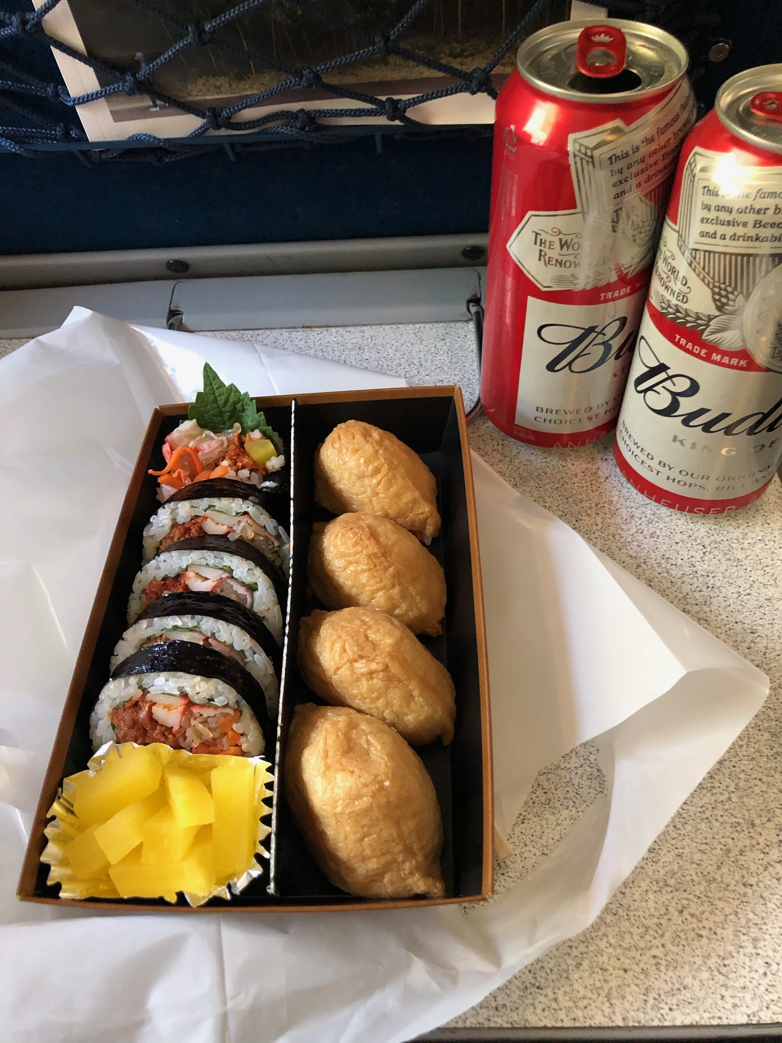 遠足気分でキンパ弁当を買いました(遠足でビールは飲まんわな:笑)♪