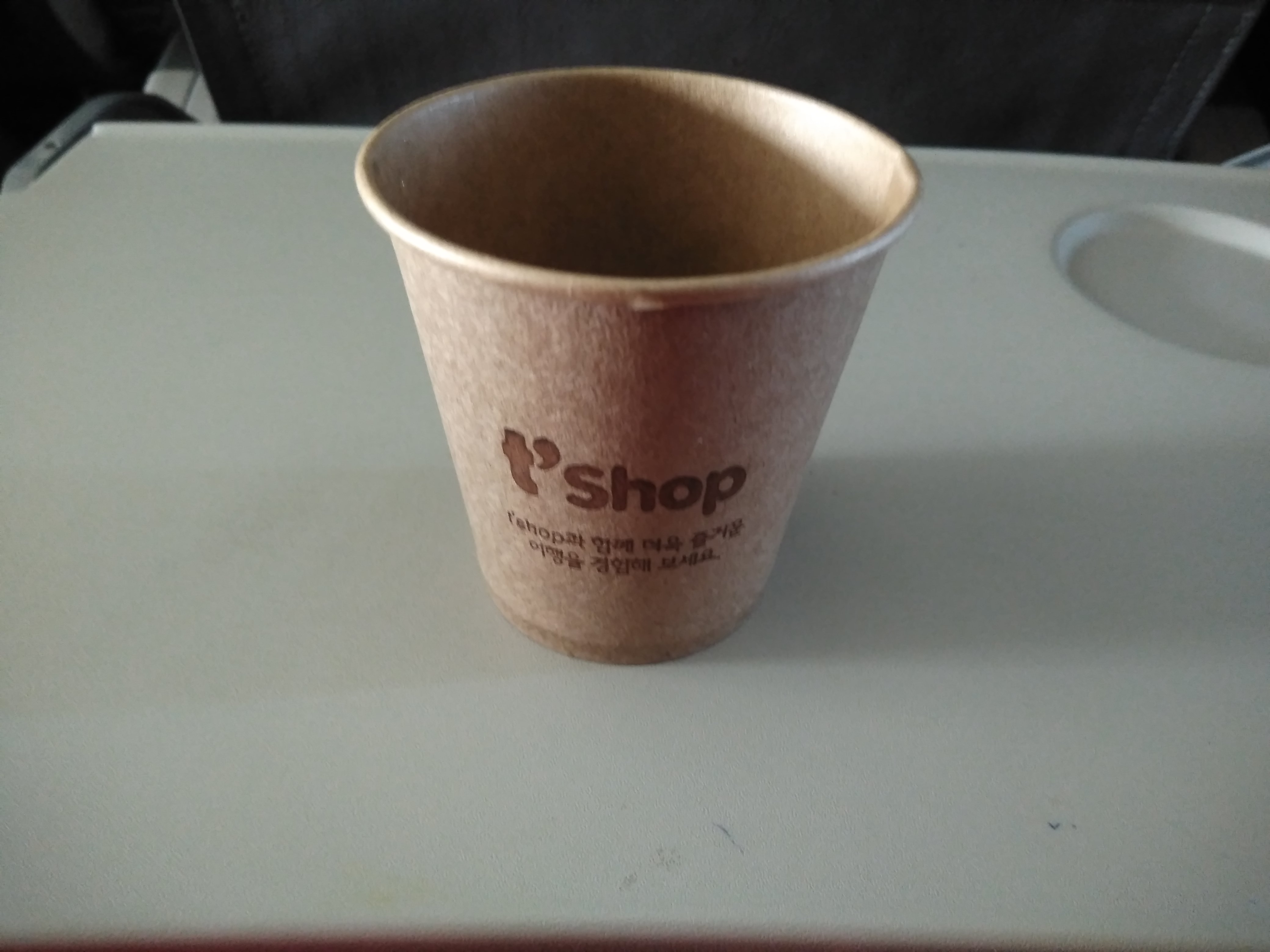 追加付帯サービスを付けないと、機内サービスはエコ紙カップの水のみ。