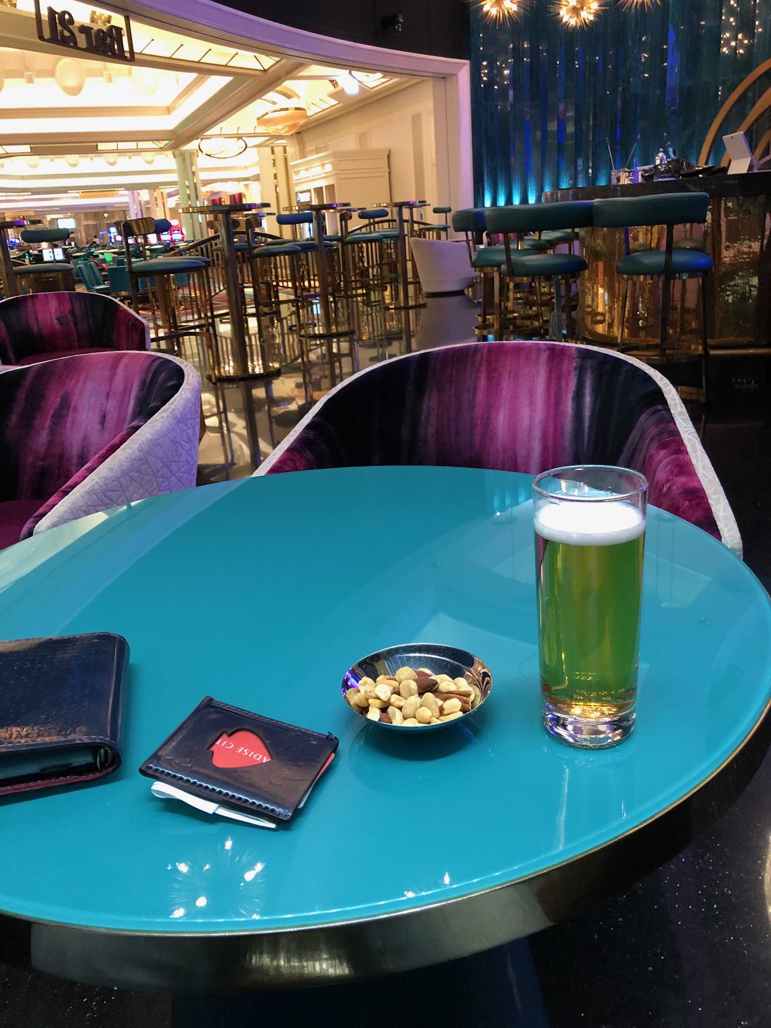 カジノに降りていくと、ナッキーさんがいました!1万BJ卓で一緒に居酒屋BJをします。