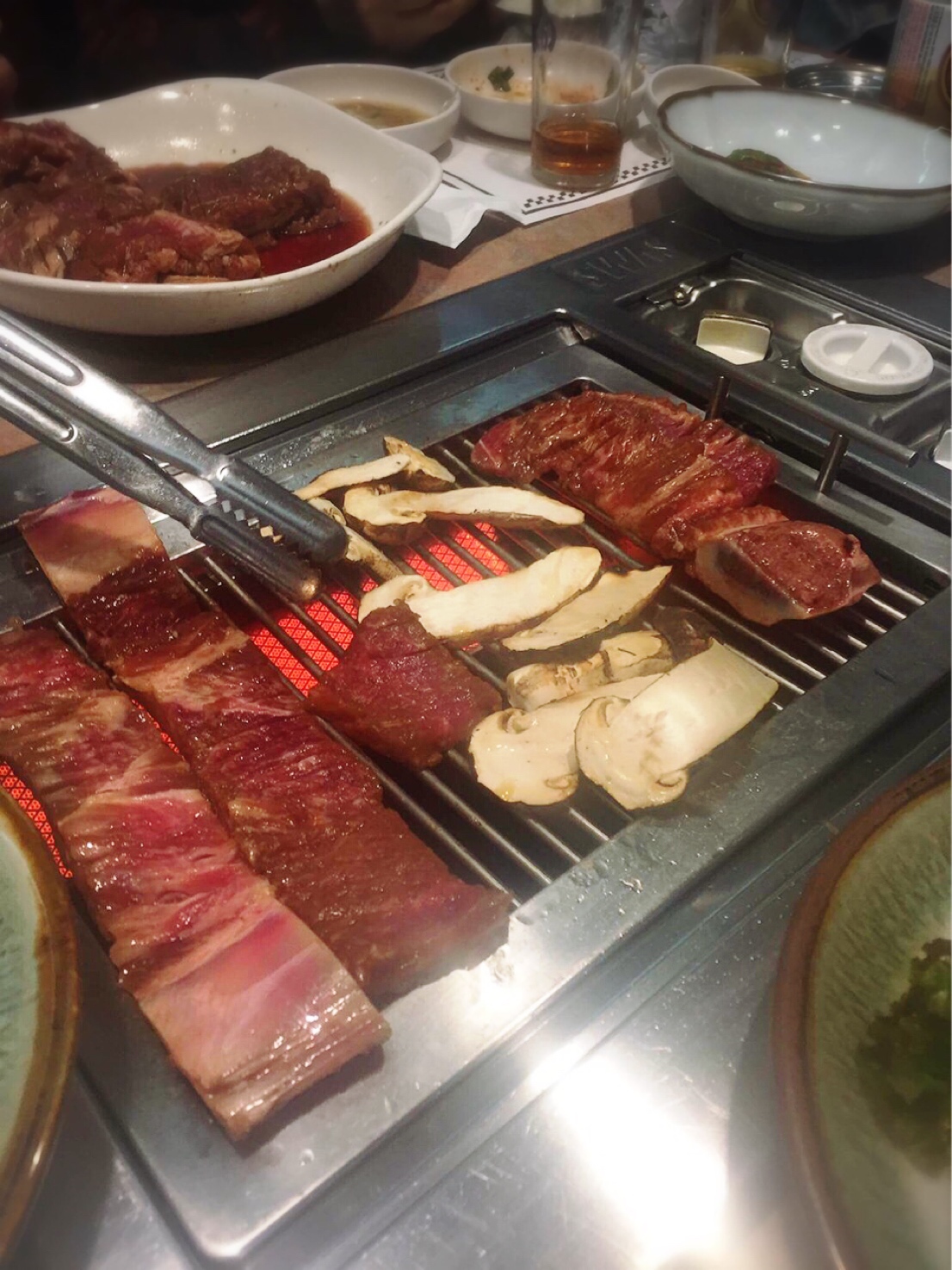 さて、夕食は「名品館」へ。骨付きカルビと松茸焼きをいただきました。松茸は今年は豊作だそうです。秋夕(ちゅそく)という韓国の休日の贈答品にされることも多いのですが、今年は秋夕が早かったこともあり、松茸の値段もリーズナブルだとか。大ぶりの立派な松茸でした。