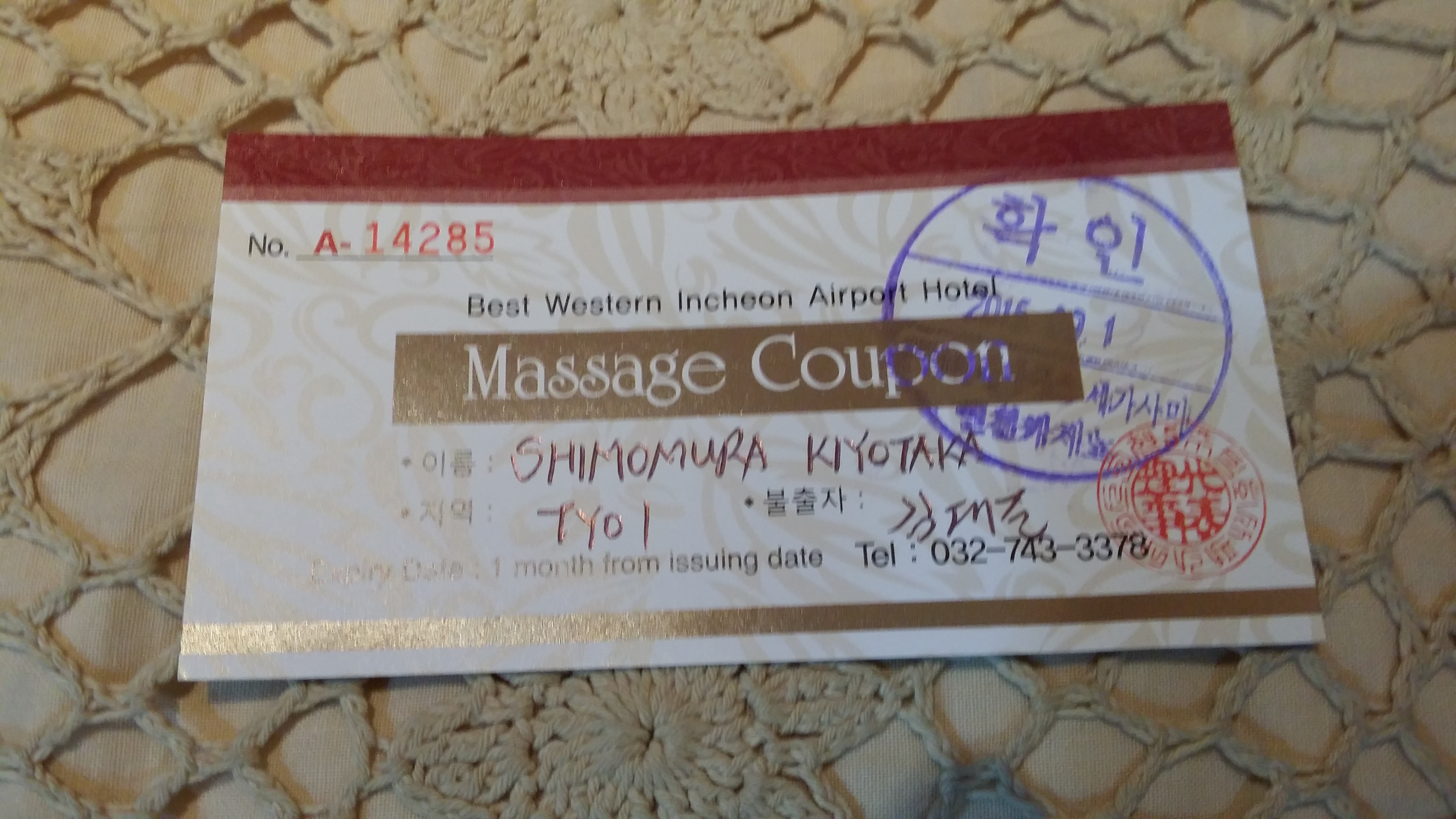 クルマで2分ぐらいのホテルの2階にmassageがある。