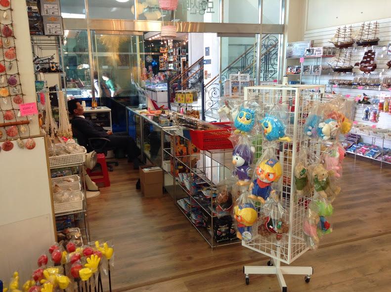 釜山タワーを降りるとお土産コーナーなのですが、平日のためかお客はほとんど居なくて、店の人はサボりまくりでした。
