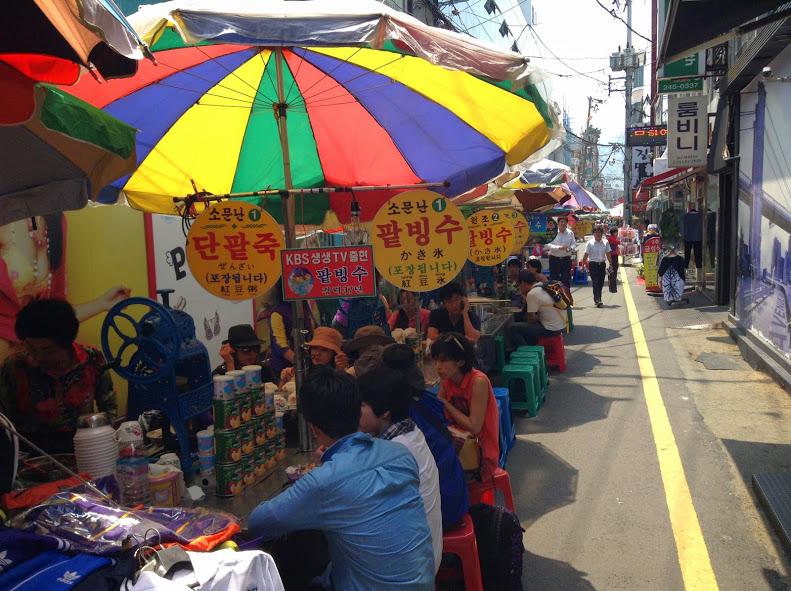 この後、釜山タワー近くにパッピンス通りというカキ氷屋台の立ち並ぶ名所があることを事前に調べていましたので行ってみました。