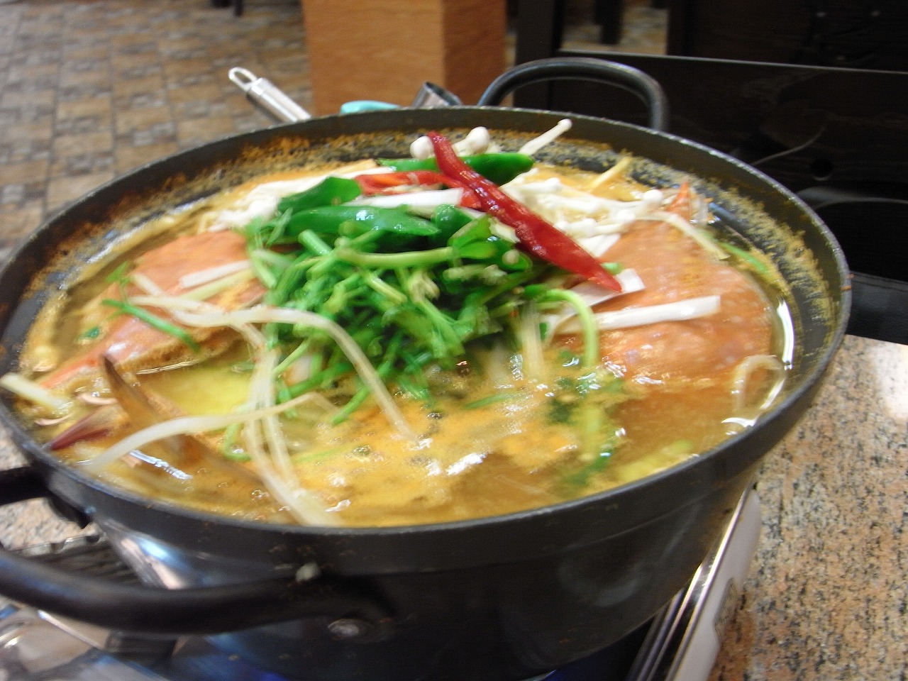 寒いので、カンジャンケジャンではなしに、コッケタン(蟹鍋)を頼みました。ケランチムと緑豆チヂミも。コッケタンは暖かいがとても辛い。そこで、ご飯も頼んで、汁に入れて辛さを和らげることにします。体に染み透る食事でした。しかも、勝ってるから、というので、さぶろうさんがおごってくれます。伊達に薄着をしているわけではないですね。喜んで遠慮なくごちそうになります。