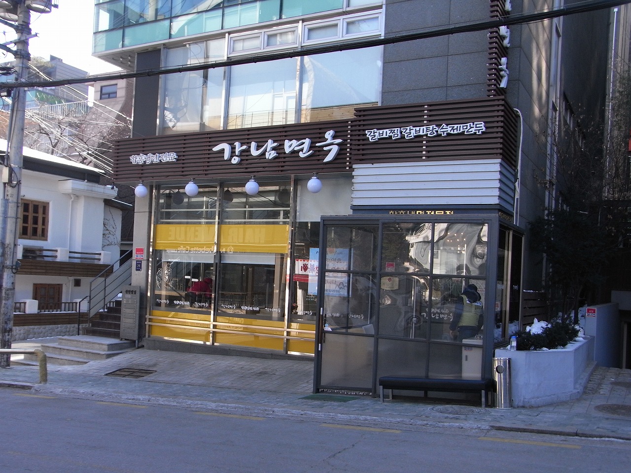 さて、まだ時間もお腹も余裕があります。地下鉄を乗り継いで、「江南麺屋」の本店に行くことにします。道は溶けきらない雪で凍っていますし、気温はうんと低いですが、北朝鮮では冬に冷麺を食べるものだ、と聞いたことがあります。