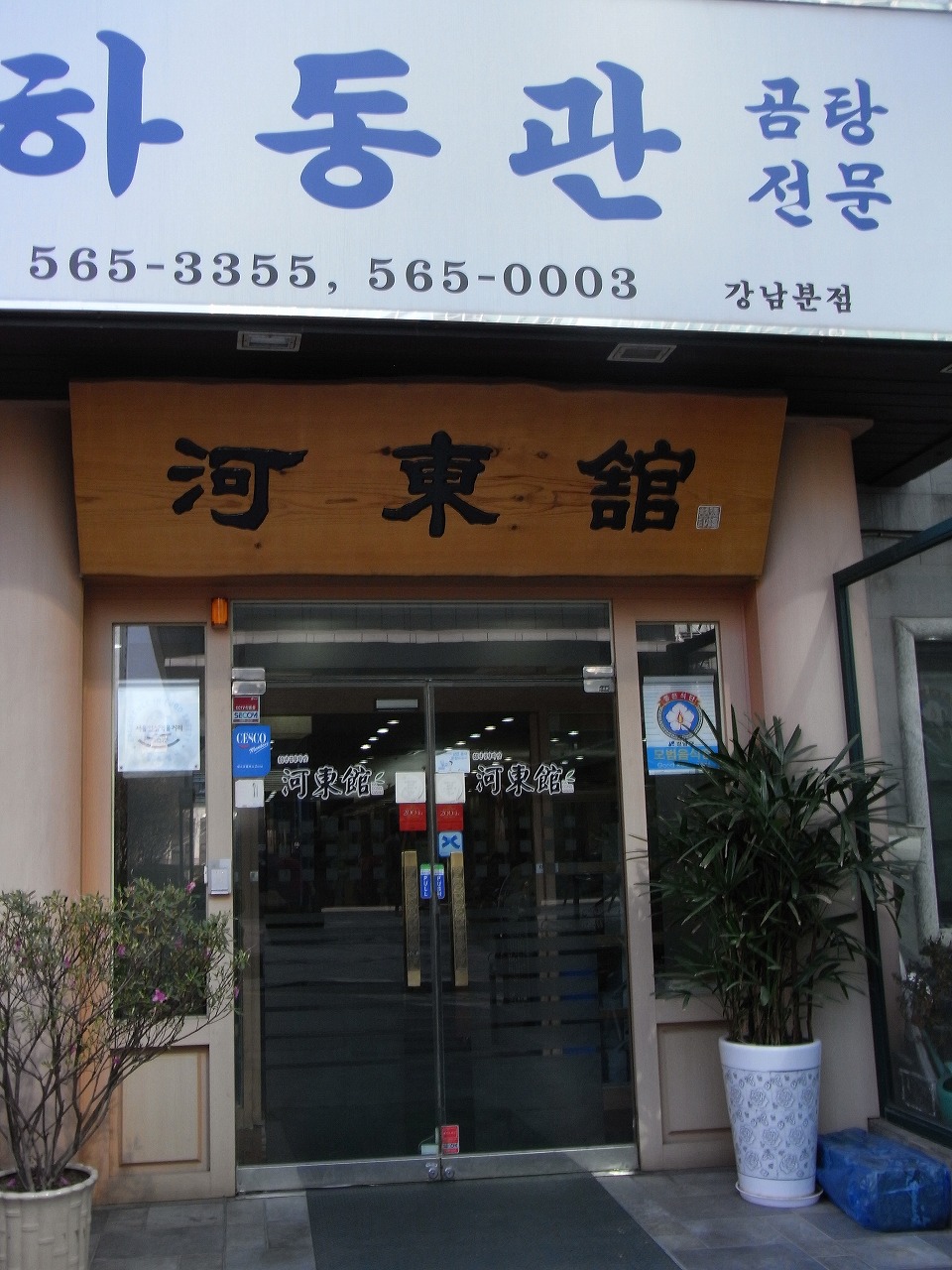 その店は「河東館」というコムタンの店です。明洞に本店があり、たいへんな人気です。もとから明洞にあったわけではなく、移転したということです。門外不出、一子相伝であるじが一日煮込んだ透明なスープの独特なコムタンを出します。