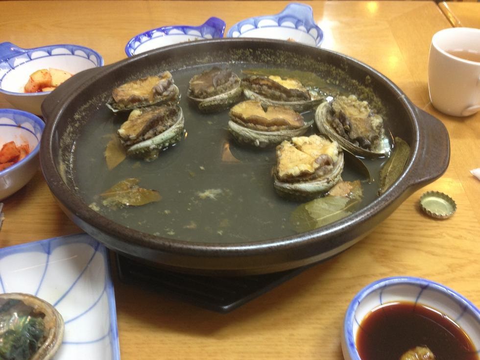ロッテホテル裏の済州屋さんにて、鮑蒸しにてビールを堪能w