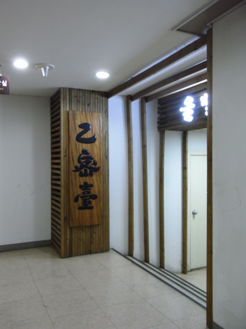 江南の駅から少し歩き、ビルの中に入ります。飲食店がたくさん並んでいるビルです、奥まった所に漢字で「乙密台」と書かれた看板がありました。12時40分くらいで、お客さんはけっこう入ってますが、並ぶほどじゃありません。
