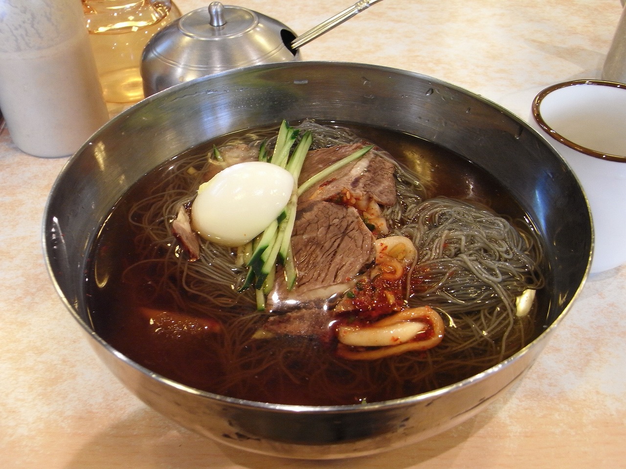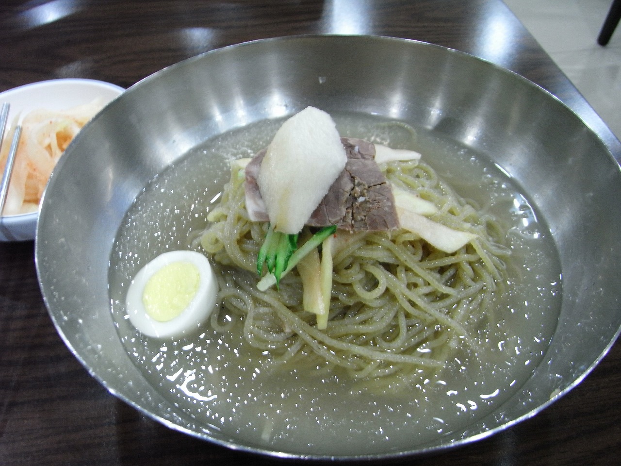 結局、ラーメン屋さんが日本でいろいろに分かれたように、冷麺も北朝鮮発祥のものですが、さまざまな形に分かれています。本家が今、どういう状況なのか、分からないですが、独自の進化を韓国ではとげているようです。昔は北朝鮮の冷麺の直営店なんかもあったと思ったのですが。 あと、今回、現地の方の食べ方でなるほど、と思ったのは、ビビン冷麺を頼んで半分くらい食べると、ユクスを注いで温麺にしているのを見たのです。あれは二種類の麺料理がいただける、アイデアだなあと思いました。ひつまぶしみたいです。