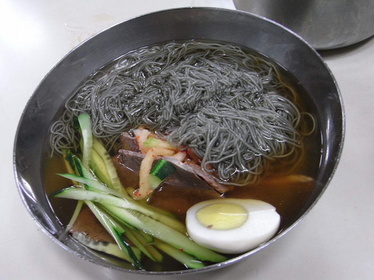 韓国の冷麺好きには、一方が口にあって、一方が胃の中に喉を通ってある、こんな嬉しいことがあるだろうか、というように、こういう細い噛みきれない冷麺を絶賛する表現があるそうです。