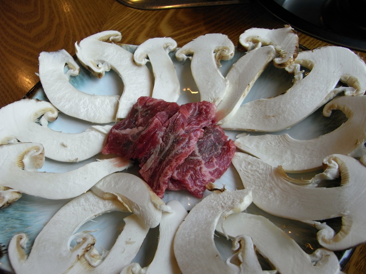 この店では他に牛スープでマツタケを煮るマツタケ鍋のメニューもあるようです。今の時期は生ですが、冷凍を使って1年中食べられるらしいです。