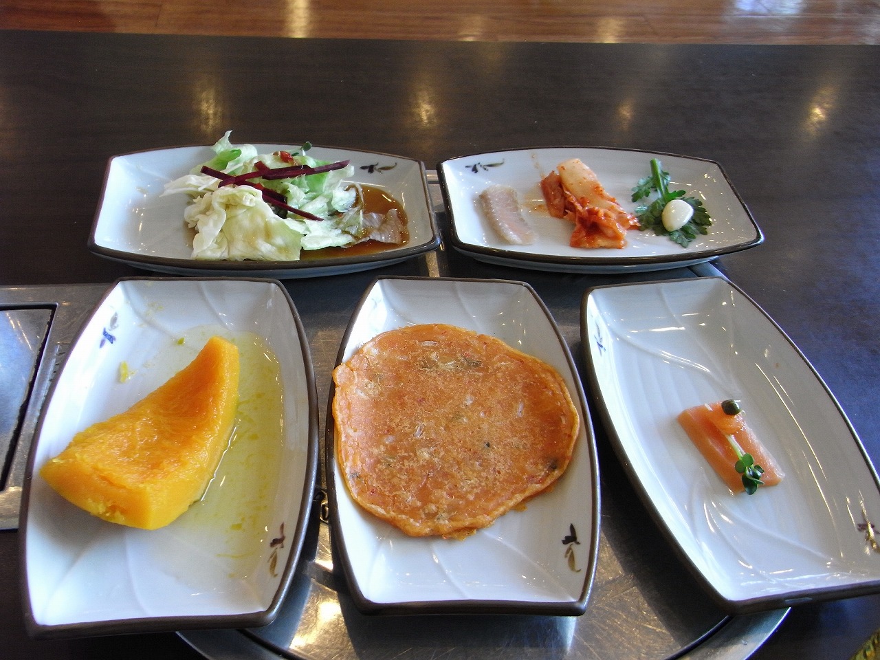 ここのバンチャンは2回にわけて出されます。前菜、があるのです。どれも少量づつですが、工夫されていて、おいしい。オシャレです。とても感心しましたし、期待が高まります。