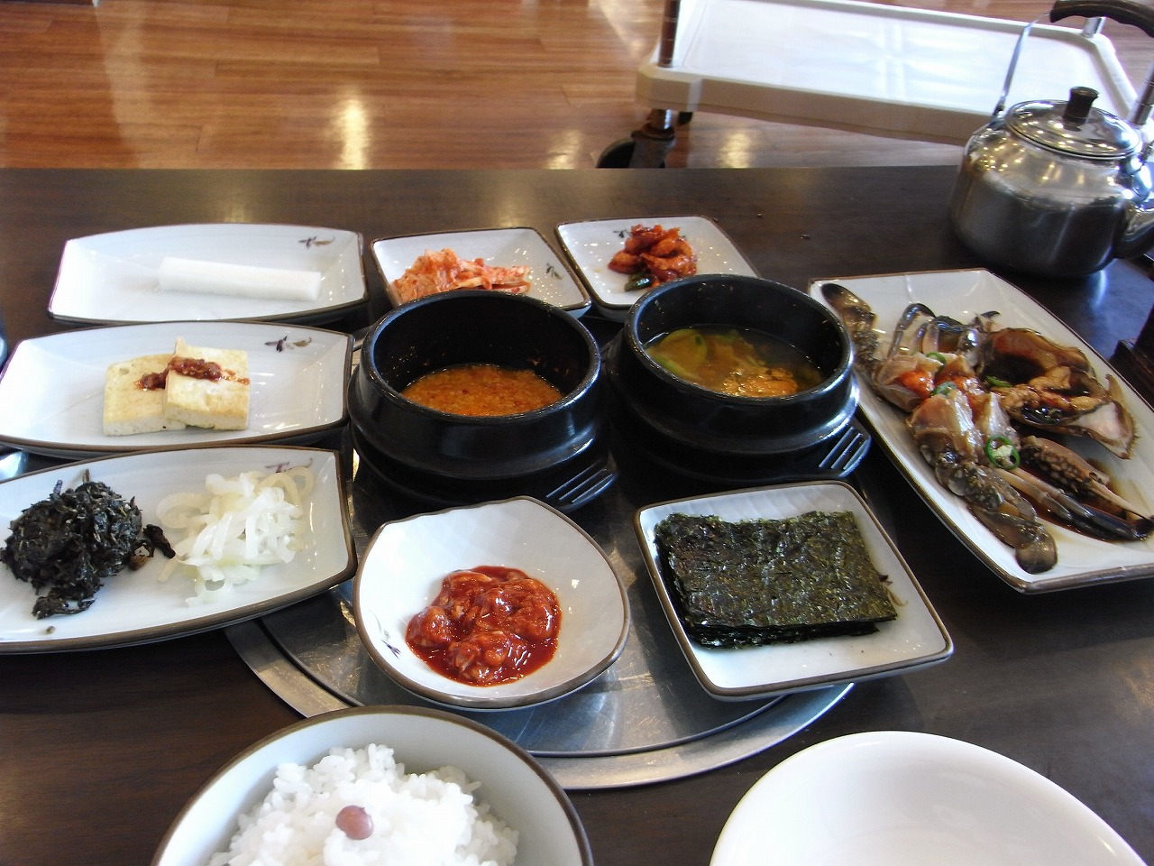 3回目はご飯、カンジャンケジャンと共に出てきました。ここのカンジャンケジャンは、牡蠣の塩辛と漬けたのが特徴で、牡蠣の旨みも乗っています。