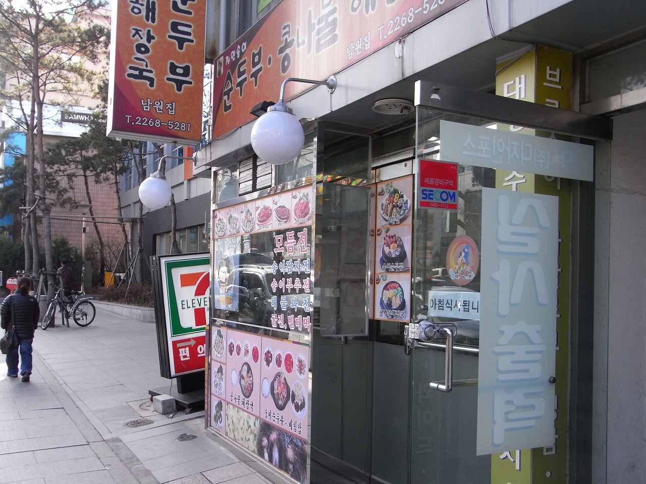 まだ8時すぎです。一人フグをすることにします。新沙の「ハルメポックッチッ」に行くことにします。24時間営業なので、朝にフグを食べることが出来ます。また、ここには、一人用のフグスープ定食があります。高級なトラフグでなくサバフグを使っているから安いのですが、それでも7000ウォンはお値打ちでしょう。