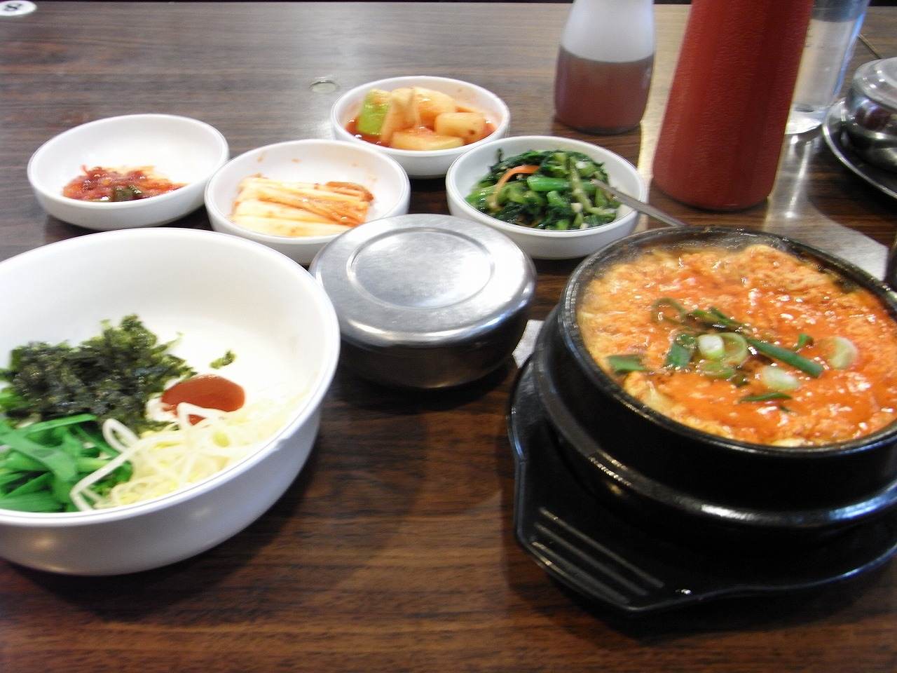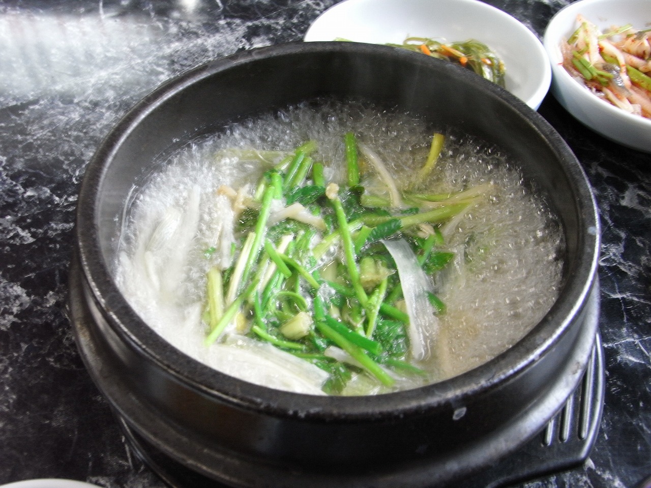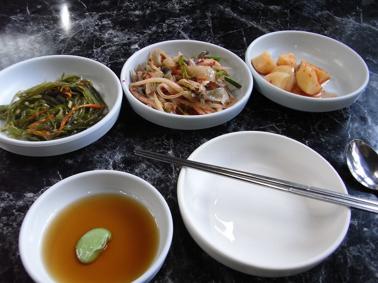 おかずも上品で、おいしいものでした。キムチと、キムチではない生白菜に唐辛子をあえたようなシャキシャキのサラダが出て、それがなかなかおいしい。どこもおかわりをしています。私もおかわりをもらいました。
