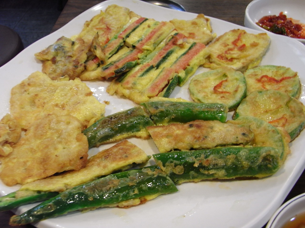 こちらもジョンの盛り合わせと牡蠣スンドウプをお願いします。あつあつで運ばれてきたスンドウプは、貝と牡蠣のダシが効いて、豆腐に染み込んでとてもおいしくなっていました。ジョンは衣がほとんど卵。ピカタみたいですが、おいしかったです。
