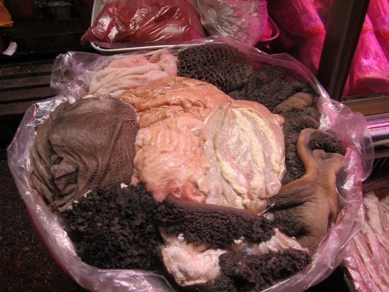 真ん中が牛の第一胃袋、ヘリの分厚いところが上ミノですね。