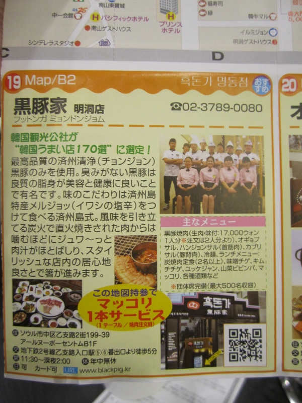 昨年最後に行った時、ミョンドンの「黒豚家」も気になっていたんですよね~。なんか新しそうな店だなぁ、と。