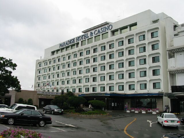 ホテルの名前は、PARADAISE OLYMPOS HOTEL&CASINOまたは、PARADAISE HOTEL&CASINO INCHEONです。 以前は、OLYMPOS HOTEL&CASINO でしたが、放漫経営と、いろいろな方面に手を伸ばしすぎて倒産して3年ほど従業員組合が経営してたようです。もともとウォーカーヒルより歴史が古くて、中国と仁川港を結ぶカジノ船を定期路線で持っていたようです。販促に聞くと以前はスーツケースに二億円くらいの現金を持ってくる金持ちが沢山いたみたいでWHより客層は良かったみたいですが,2000年の4月にパラダイスグループに買収されてしまいました。 パラダイスになって2年、この間にホテルはカジノを含んでかなりの改装を行いました。もう過去の話で時効だと思いますのでしょうもない出来事を書きます。