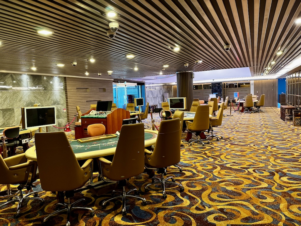 カジノは、公式画像で見た印象よりも小さく感じる箱でした。滞在中、平場のETGは非稼働。オープンバカラが2卓、絞りバカラが1台稼働しており、平日の夜でも賑わっている印象でした。